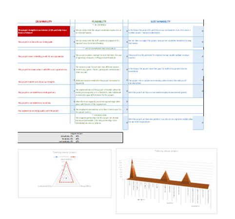 This assessment framework is based on the principles of design thinking. With an eye on sustainable motivation, viability is replaced by sustainability in the dashboard below